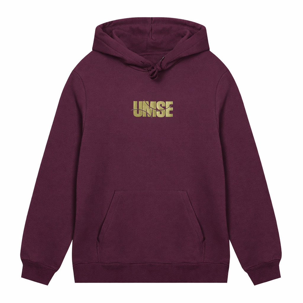 Hochwertiger Hoodie in der Farbe grape-wine von Aight mit goldenem, gesticktem UMSE-Immunsystem-Logo.